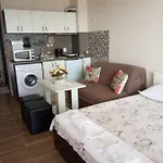 Има мини кухня с микровълнова фурна, хладилник и кухненско оборудване, както и кафе/чайна уредба, гарантираща по-добро хранене. Този апартамент е на няколко метра от автобусната спирка на Поморие-Такси.